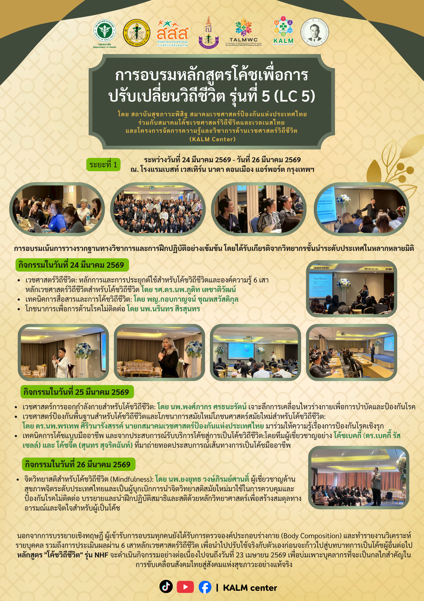 การอบรมหลักสูตรโค้ชเพื่อการปรับเปลี่ยนวิถีชีวิต รุ่นที่ 5 (LC 5)