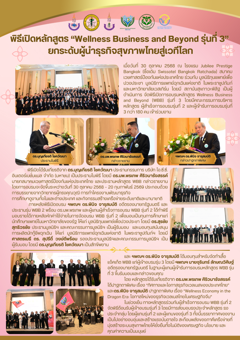 “Wellness Business and Beyond รุ่นที่ 3” วันพฤหัสบดีที่ 4 ธันวาคม 2568