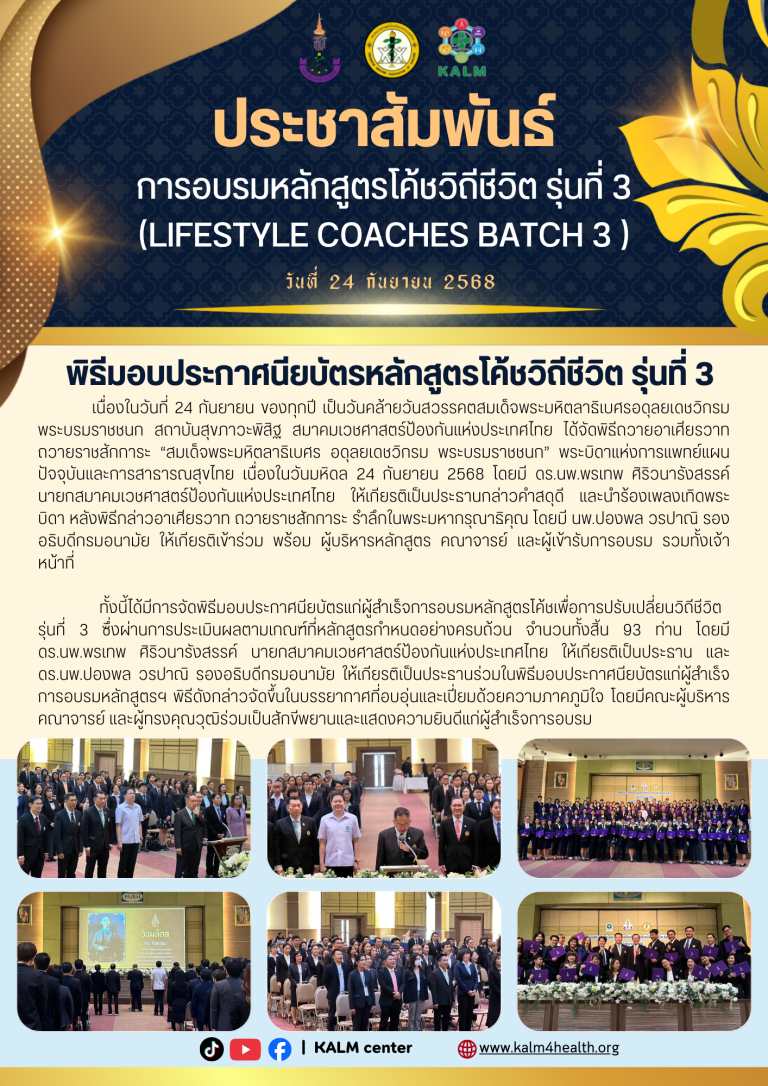 การอบรมหลักสูตรโค้ชวิถีชีวิต รุ่นที่ 3 (Lifestyle Coaches Batch 3)