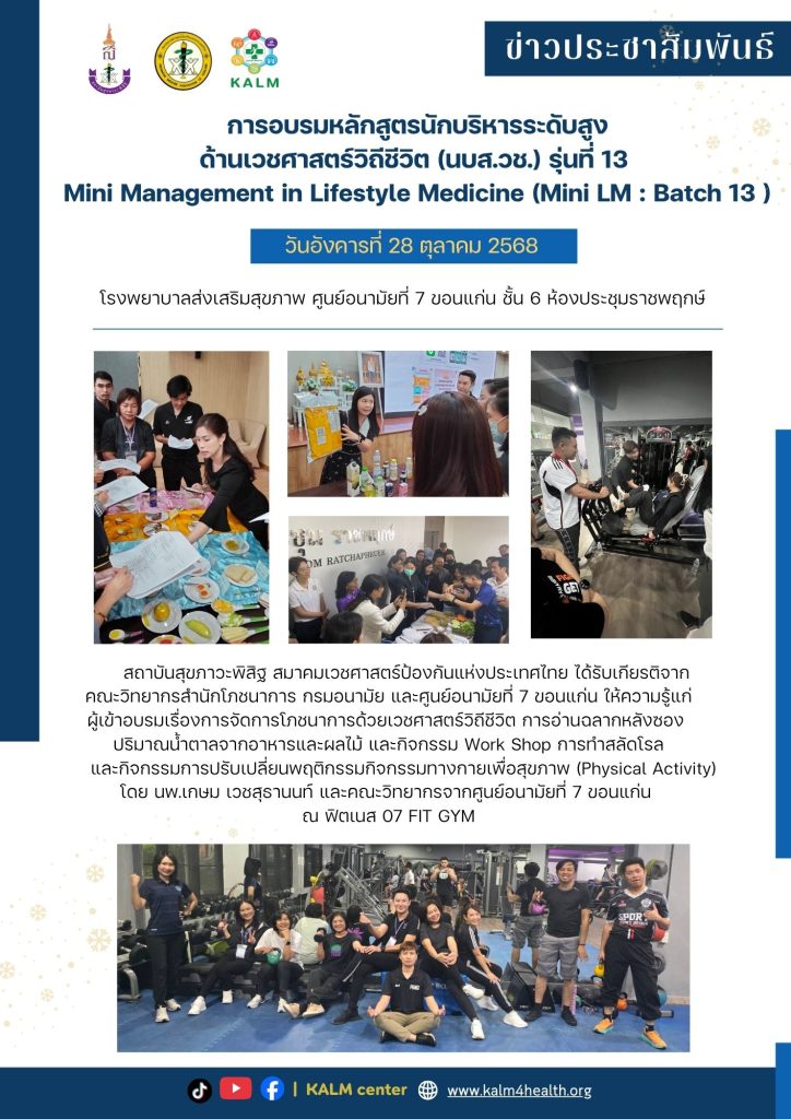 Mini LM, ข่าวประชาสัมพันธ์, ปชส.กิจกรรมต่างๆการอบรมหลักสูตรนักบริหารระดับสูงด้านเวชศาสตร์วิถีชีวิต (นบส.วช.) รุ่นที่ 13 Mini Management in Lifestyle Medicine (Mini LM : Batch 13 ) วันพุธที่ 29 ตุลาคม พ.ศ. 2568 kalm_admin2 / พฤศจิกายน 5, 2025